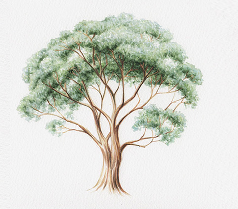 Now comes a eucalyptus tree in its entirety, which is something I paint less often as you know. I love getting into the micro worlds of my subjects, so this study is wonderful for me, bringing with it a fun opportunity to explore the tree as a whole. Its part of working with commercial clients the most, constantly pushing you into new areas of your already familiar ground. It really helps you to grow as an artist and illustrator. And so you can see, three illustrations in, there is quite a diversity in the painting subjects, but an important cohesion to the styling and language of them all as a group.